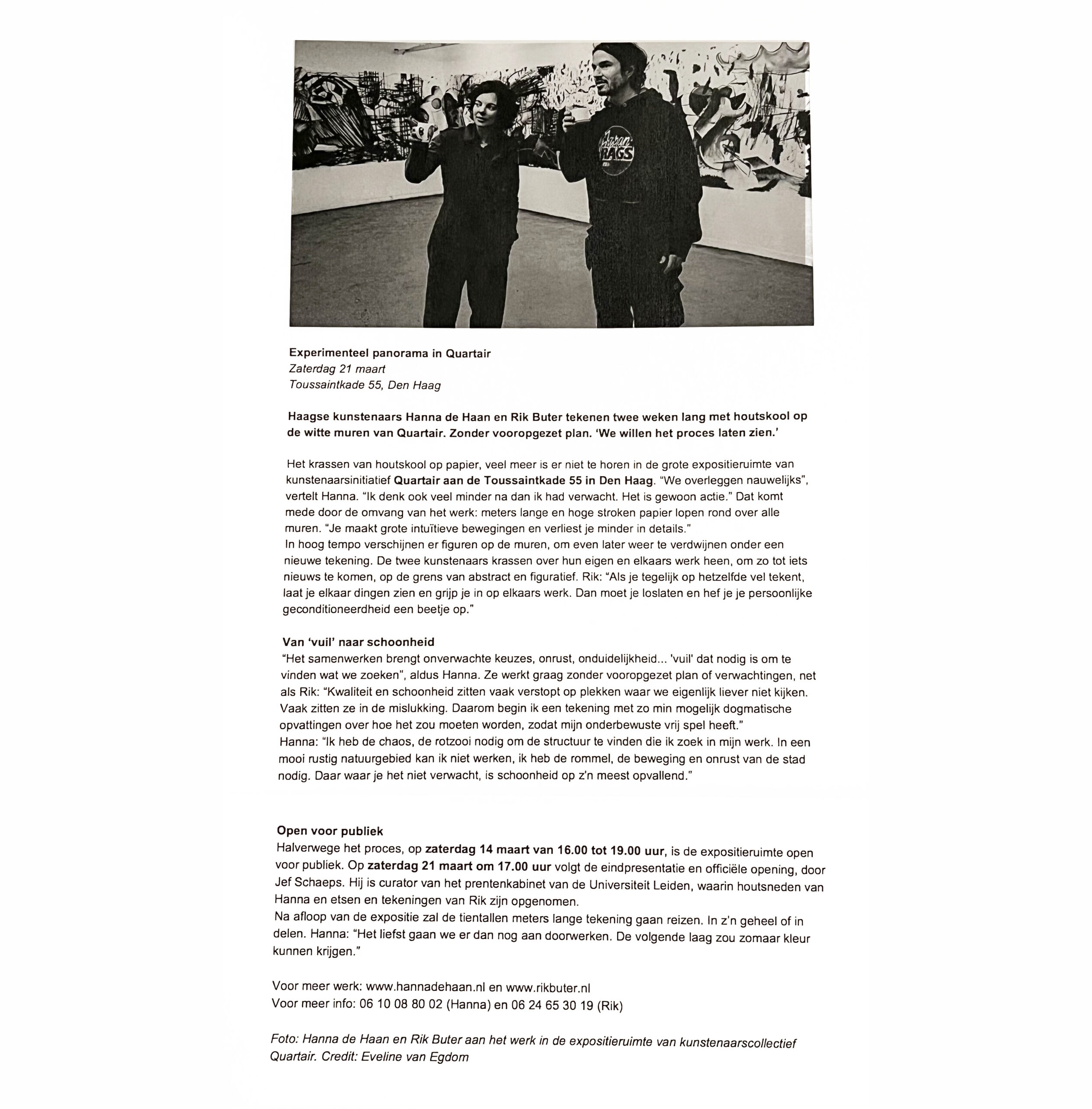 - Nov. 13 20:00-22:00 een monumentale dialoog – artist lecture Hanna de Haan + Jurjen Ravenhorst, Kunstliefde Utrecht.